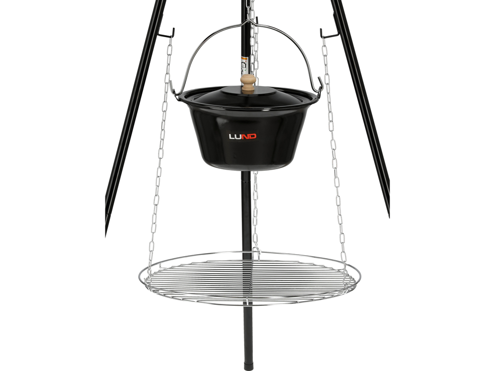 Nešiojamoji medžio anglių kepsninė ant trikojo su reguliuojamomis grotelėmis ir dangčiu uždaromu katilu. Dėl lengvos konstrukcijos kepsninę galima laisvai perkelti į bet kurią vietą. Dvi kaitinimo galimybės leidžia vienu metu ruošti skirtingų rūšių maistą.