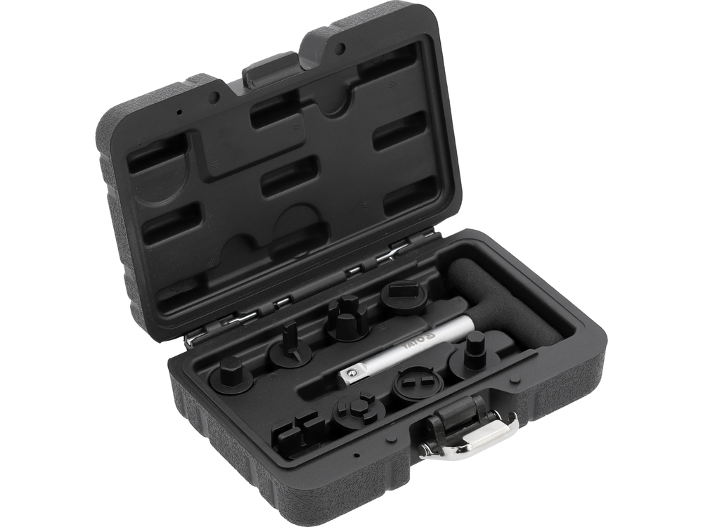 Veržliarakčių rinkinys, skirtas saugiai atsukti ir užsukti plastikinius alyvos kamščius / "Audi", BMW, "Dodge", "Ford", "Lincoln", "Mercedes" ir VW automobiliuose. Raktas užtikrina tinkamą priveržimo momentą, kad kamščiai neįsirėžtų į tepalo indo sriegį. Galima montuoti 8 tipų kamščius / "Audi", BMW, "Dodge", "Ford", "Lincoln", "Mercedes" ir VW automobiliuose.