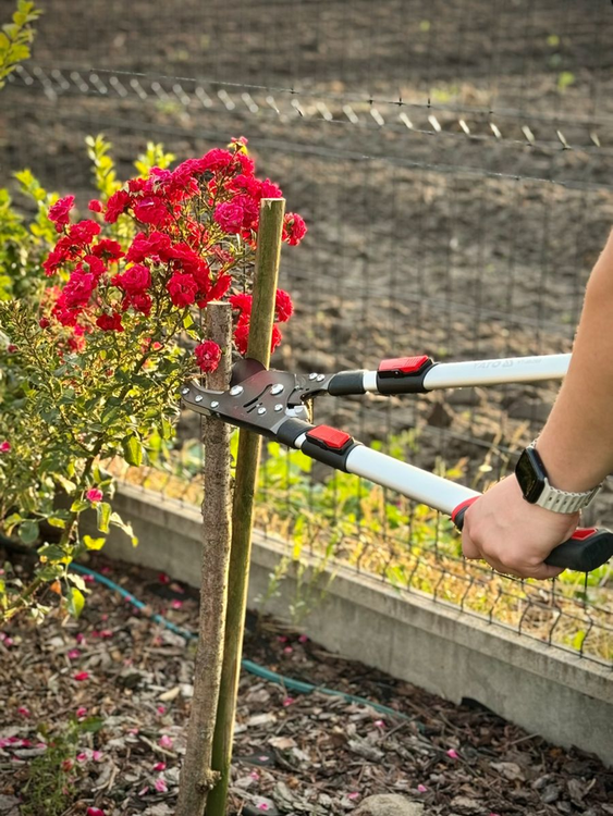 Teleskopinės genėjo rankenos padidina įrankio ilgį ir pasiekimą nuo 660 iki 910 mm, leisdamos prisitaikyti prie sąlygų ir atliekamų užduočių. Pagamintos iš lengvo ir tvirto aliuminio lydinio su PP ir minkšto TPR elementais užtikrina patikimą ir patogų suspaudimą. SK5 kietojo plieno ašmenys, viršutinėje dalyje padengti PTFE sluoksniu, mažina trintį, išlaikydami aštrumą ilgą laiką.