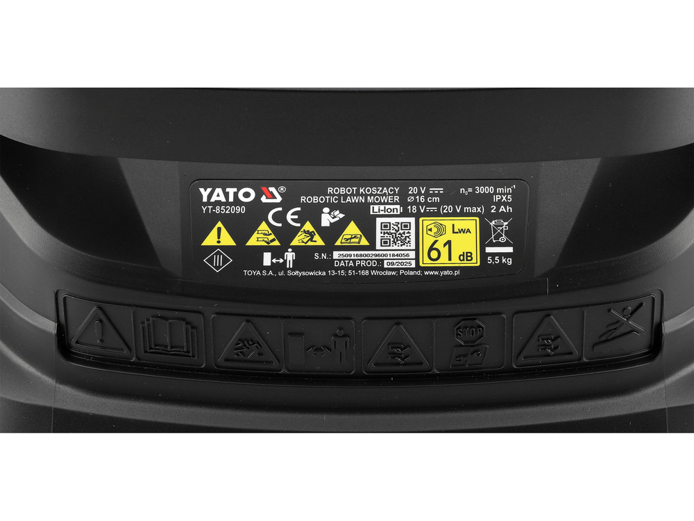 - apsaugos lygis: IPX5 (žoliapjovė), IP67 (dokavimo stotis)