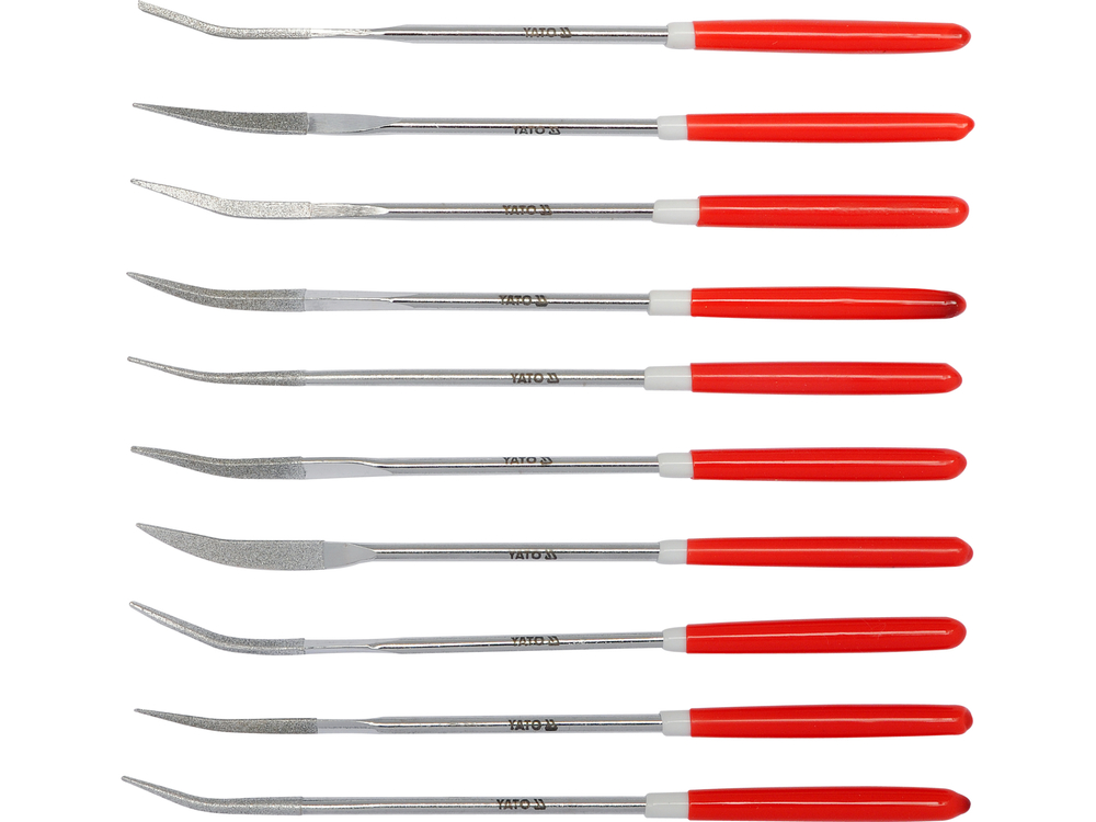 Zestaw 10 sztuk diamentowych pilników - iglaków o różnych profilach.