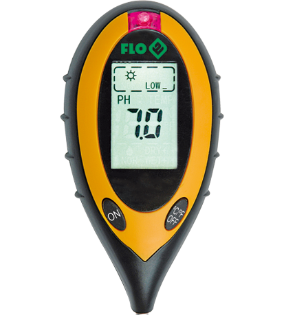 - przełącznik z tyłu obudowy ustawić w pozycji pH. Sondę delikatnie i pionowo wbić w glebę. Włączyć urządzenie. Odczynnik pH zostanie pokazany na wyświetlaczu. Przeprowadzić kilka pomiarów w celu uzyskania dokładniejszego wyniku pomiaru. Wskazanie pH 7 oznacza glebę o neutralnym odczynniku. Wskazanie poniżej pH 7 oznacza glebę o odczynniku kwaśnym, natomiast wskazanie powyżej pH 7 oznacza glebę o odczynniku zasadowym. Wyświetlenie „Lo” lub „HH” oznacza wyjście poza zakres pomiarowy.