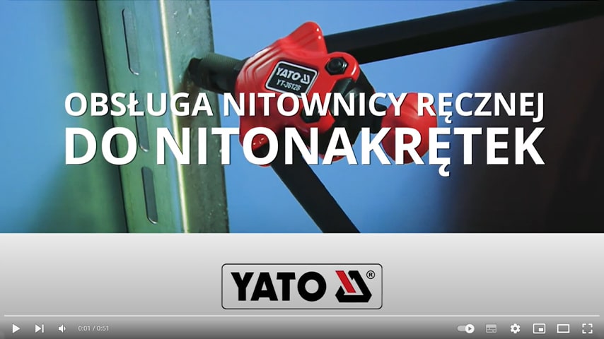 Nitownica ręczna do nitonakrętek w rozmiarach M3 - M12 marki YATO.7. Wykonuje połączenia materiałów za pomocą wewnętrznie gwintowanej tulei. Pozwala to na przykręcanie dodatkowych elementów wkrętami do metalu lub śrubami.