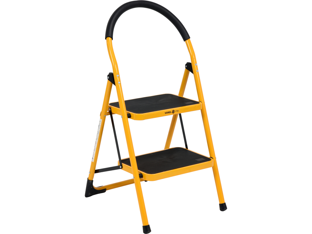 Drabina posiada 2 stopnie o wymiarze 36x26cm, które dodatkowo posiadają podkładki anty-poślizgowe. Dzięki temu pozwala pewnie i stabilnie stanąć na niej bez obawy o ześlizgnięcie się czy potknięcie. Dodatkowy wspornik ochronny u góry drabiny z miękką otuliną gąbkową zabezpiecza przed spadnięciem, a jednocześnie jest bardzo wygodny do przenoszenia.