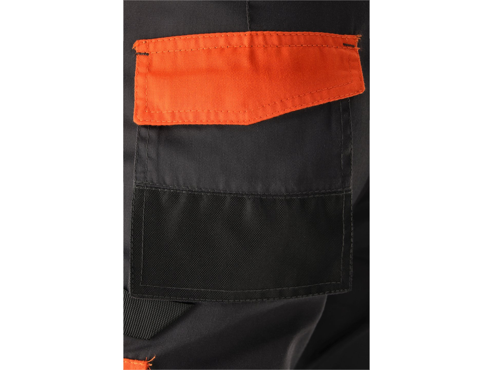 - z tyłu poniżej pasa dwie duże kieszenie z patką, zapinane na rzep, obszyte do połowy materiałem o wzmocnionej odporności na ścieranie