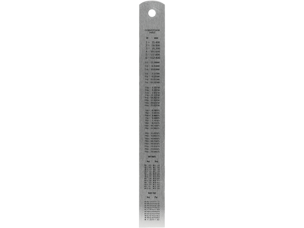 - Praktyczne tabele konwersji wartości gwintów umieszczone na rewersie liniału