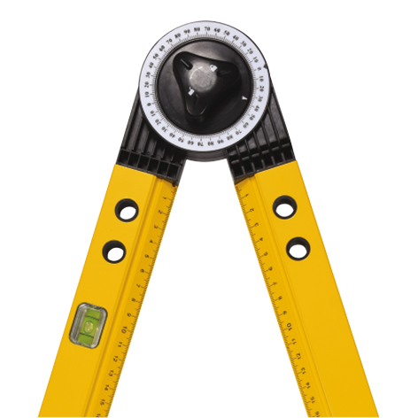 Kątomierz budowlany o długości ok. 630 mm do pomiaru kątów lub wyznaczania okręgów.