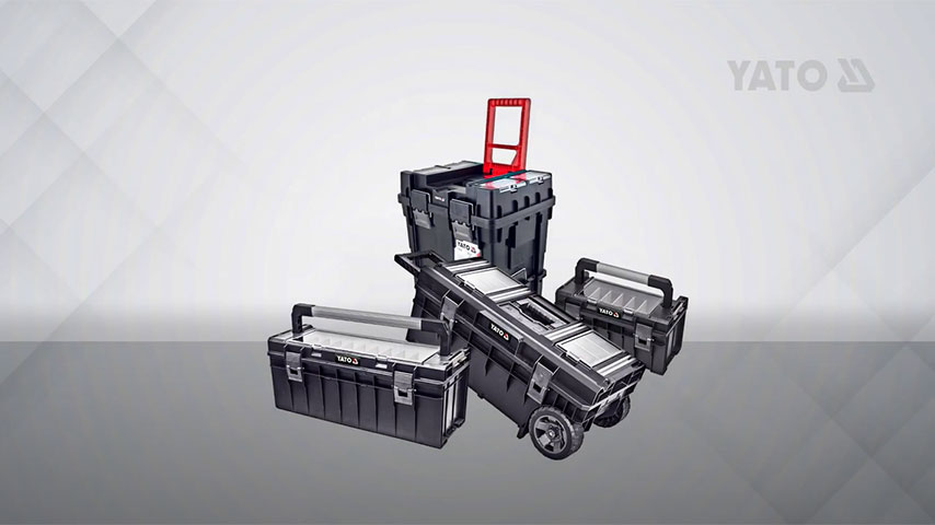 - Pojemna ergonomiczna zamykana skrzynia posiadająca transparentny organizer z regulowanymi przegrodami w pokrywie.