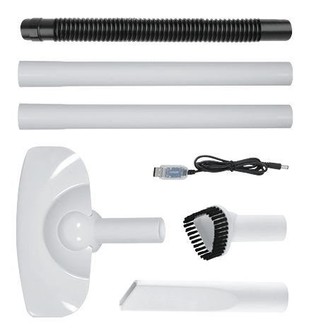 - kabel USB z okrągłą wtyczką do odkurzacza, długość 120cm, 5V/1A (brak możliwości odkurzania w trakcie ładowania)