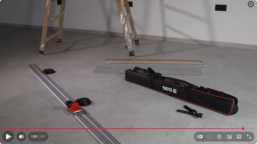 - zależnie od wielkości ciętej płyty mocujemy na jej powierzchni jedną, dwie lub połączone trzy prowadnice