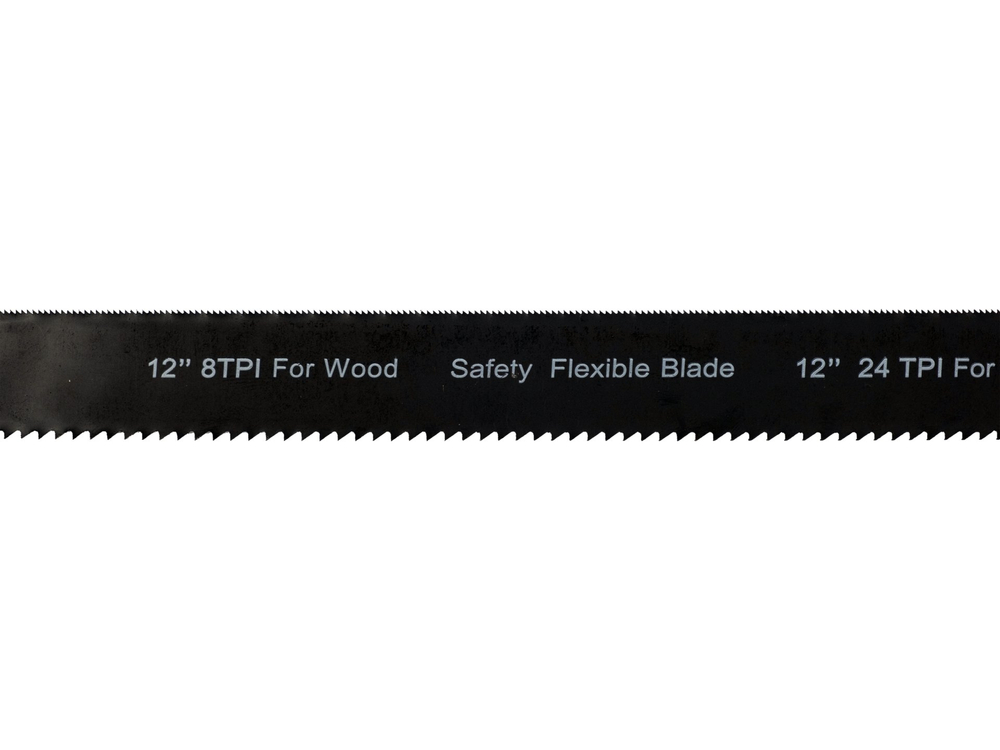 - do ramki założony jest brzeszczot uniwersalny, dwustronny 300 x 25 mm o podziałce zębów 8 tpi do drewna i 24 tpi do metalu