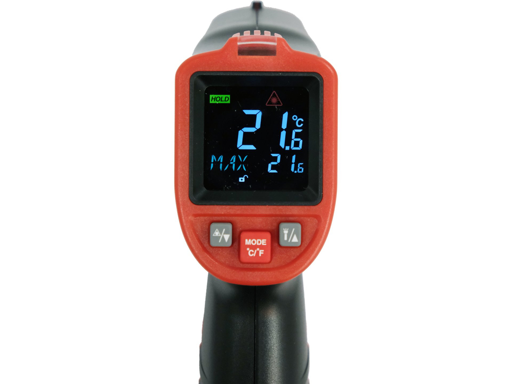 - funkcja stałego pomiaru temperatury bez konieczności trzymania spustu [symbol kłódki]