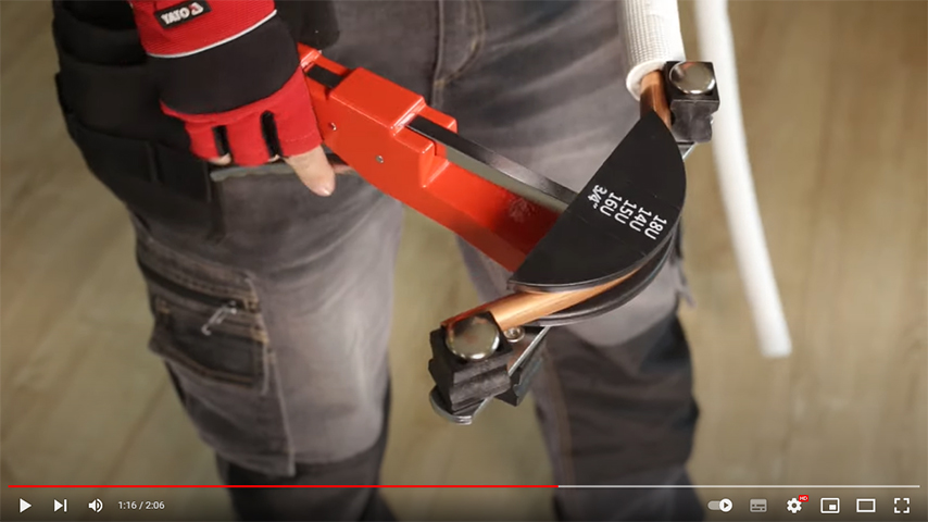 Giętarka kuszowa z nylonowymi matrycami. Przeznaczona do gięcia miękkich rur miedzianych i aluminiowych. Kuszowa konstrukcja i mechanizm zapadkowy odciążają użytkownika, dzięki czemu ma dużą kontrolę nad efektami pracy. Urządzenie znajduje zastosowanie w pracy instalatorów klimatyzacji i chłodnictwa.