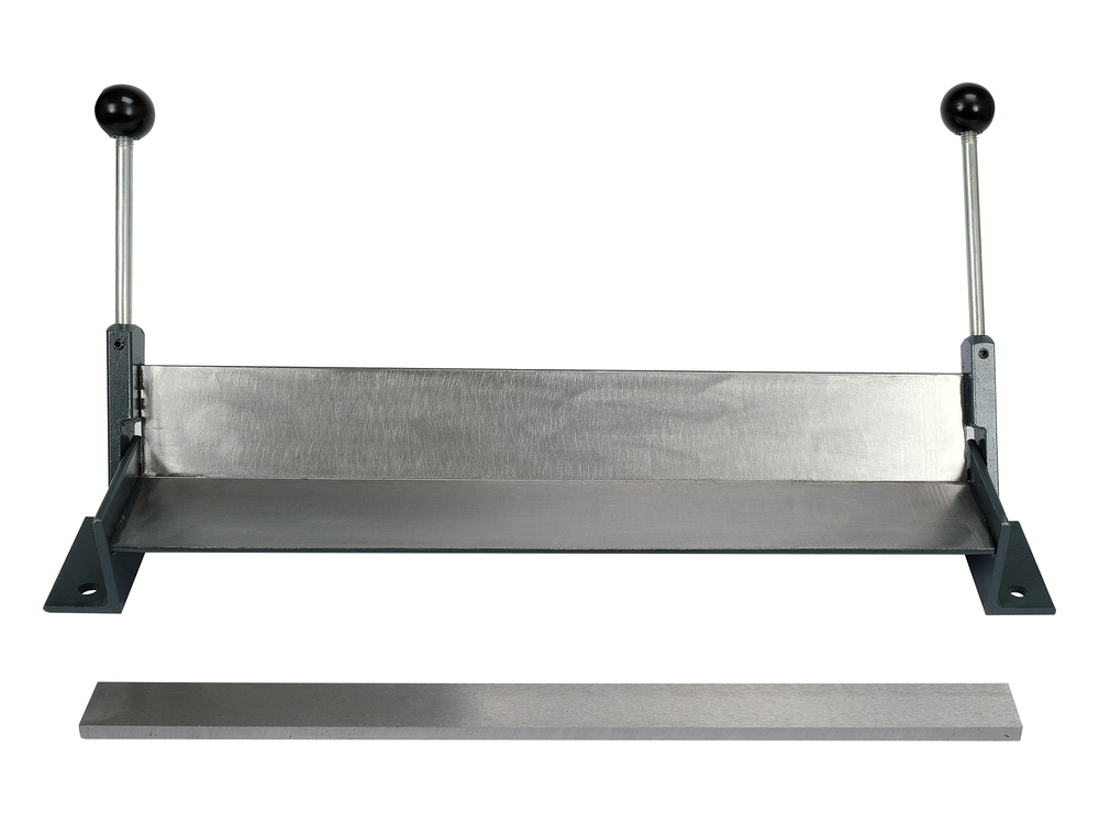 Giętarka do miękkich blach zimnowalcowanych. Blacha unieruchamiana jest stalową listwą przez zaciśnięcie ściskami (ściski nie są dołączone do zestawu). Użytkownik nadaje blasze oczekiwany kąt wygięcia przez dociśnięcie górną płytą. Górna płyta gnąca wyposażona jest w dwa uchwyty ułatwiające dociskanie.
