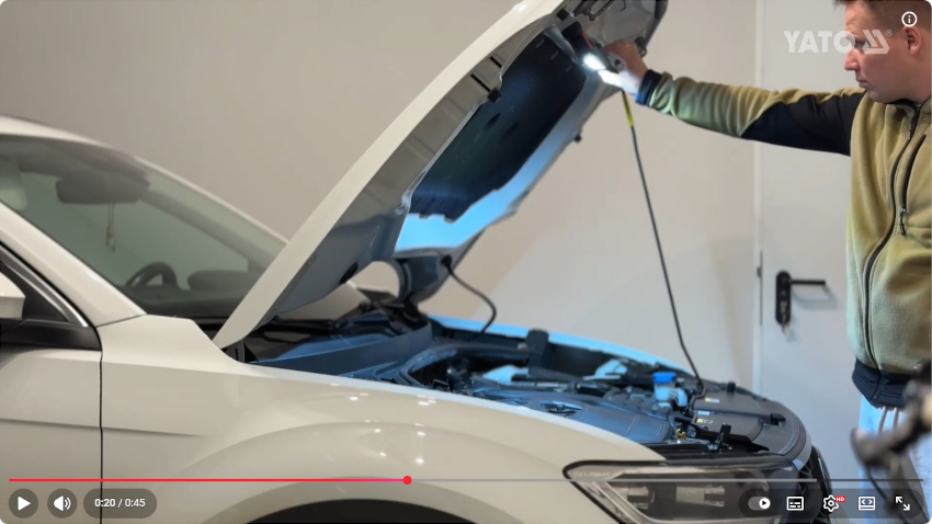 Długa lampa do oświetlania komory silnika i innych prac warsztatowych z możliwością uruchamiania na dwa sposoby - włącznikiem lub czujnikiem ruchu. Aktywacja sensora poprzez machnięcie ręką doskonale sprawdza się podczas pracy brudnymi rękami, w rękawiczkach lub bez możliwości naciśnięcia przycisku.