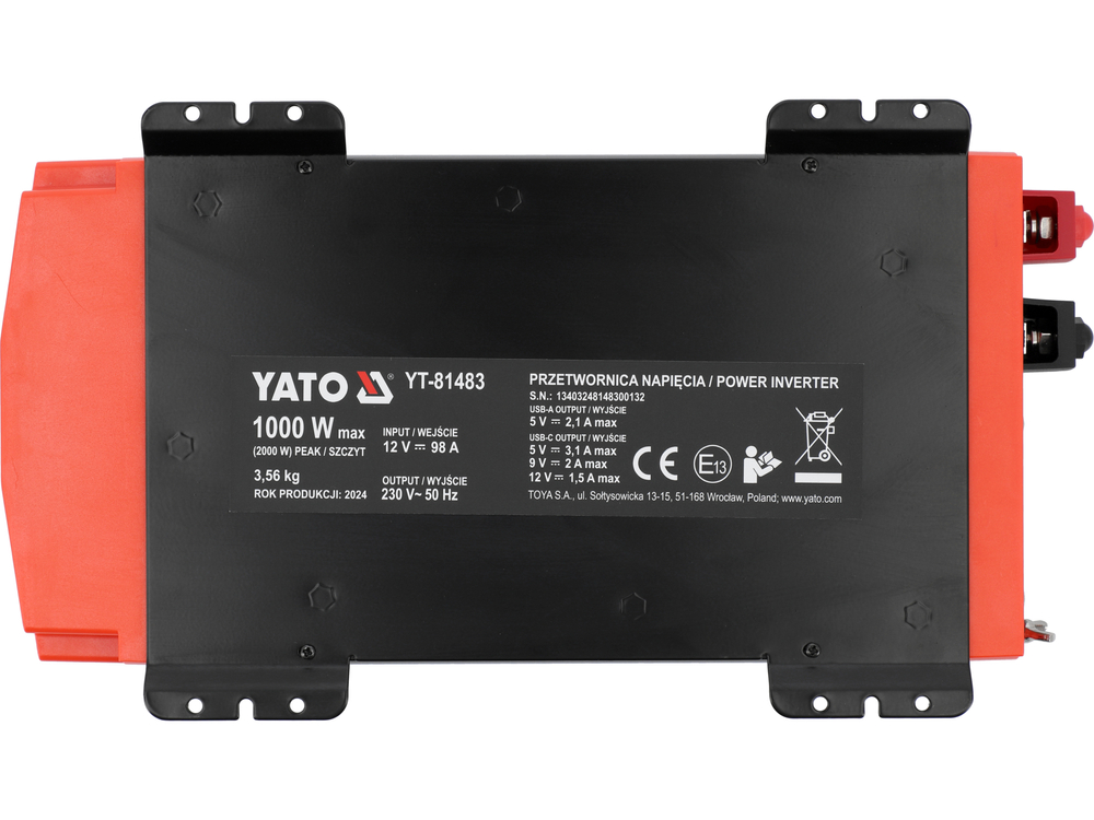 - PRZETWORNICA NAPIĘCIA 12/230V 1000W CZYSTY SINUS