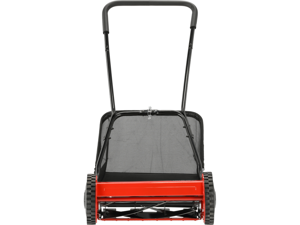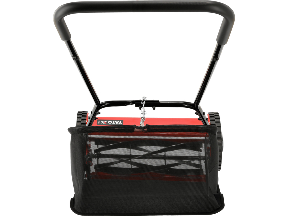 Kosiarka jest wyposażona w kosz, ułatwiając zbieranie skoszonej trawy i eliminując konieczność dodatkowego sprzątania. Noże wykonane z wysokiej jakości stali zapewniają precyzyjne cięcie.