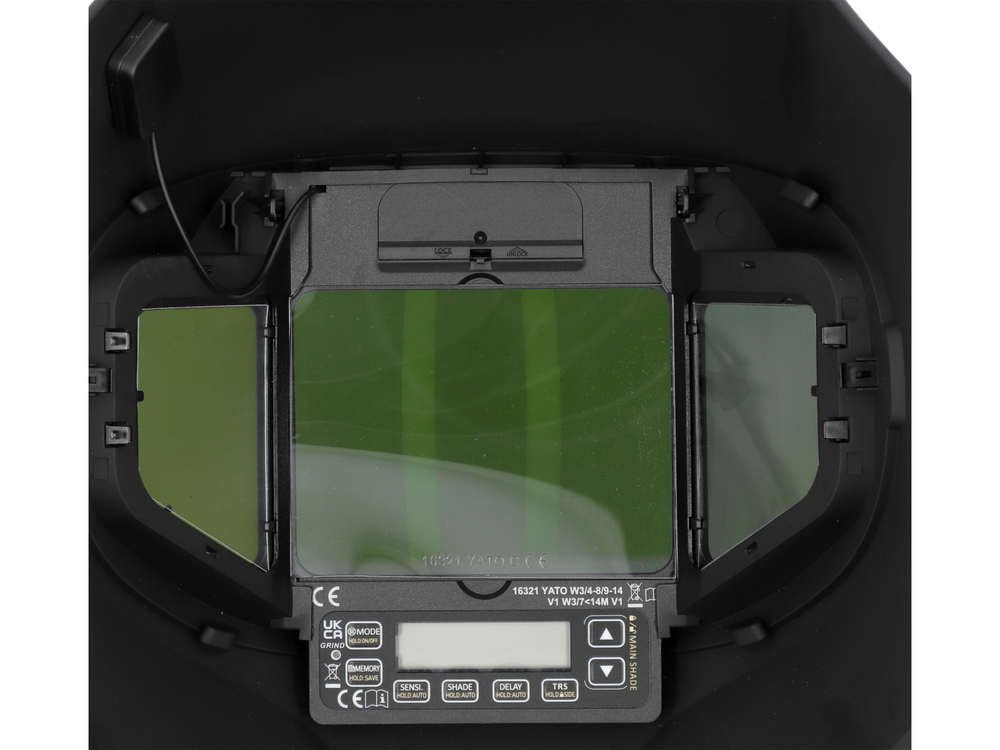 - przycisk TEST umożliwia sprawdzenie poprawności działania funkcji samościemniania. TEST w filtrach cyfrowych przyłbic spawalniczych YATO uruchamia procedurę testowania każdego stopnia zaciemniania. Rutyna każdorazowego sprawdzania poprawności działania filtra pomoże uchronić oczy i zdrowie operatora.