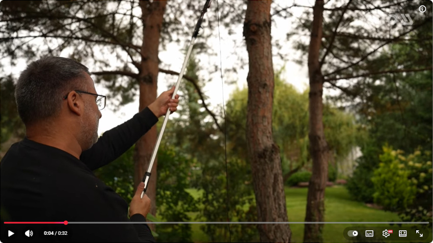 - Teleskopowy trzonek z aluminium, regulowany w dwóch pozycjach dla optymalnego zasięgu