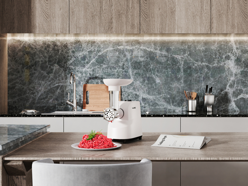 Wydajna praca na poziomie 2–3 kg mięsa na minutę sprawia, że urządzenie doskonale sprawdza się zarówno przy codziennym gotowaniu, jak i podczas szykowania zapasów lub spotkań rodzinnych. Ostrze i dwa sitka ze stali nierdzewnej (5 mm i 7 mm) gwarantują precyzyjne mielenie i trwałość elementów roboczych. Dodatkowym atutem jest silnik CCA przystosowany do dużego obciążenia o mocy szczytowej 1000W