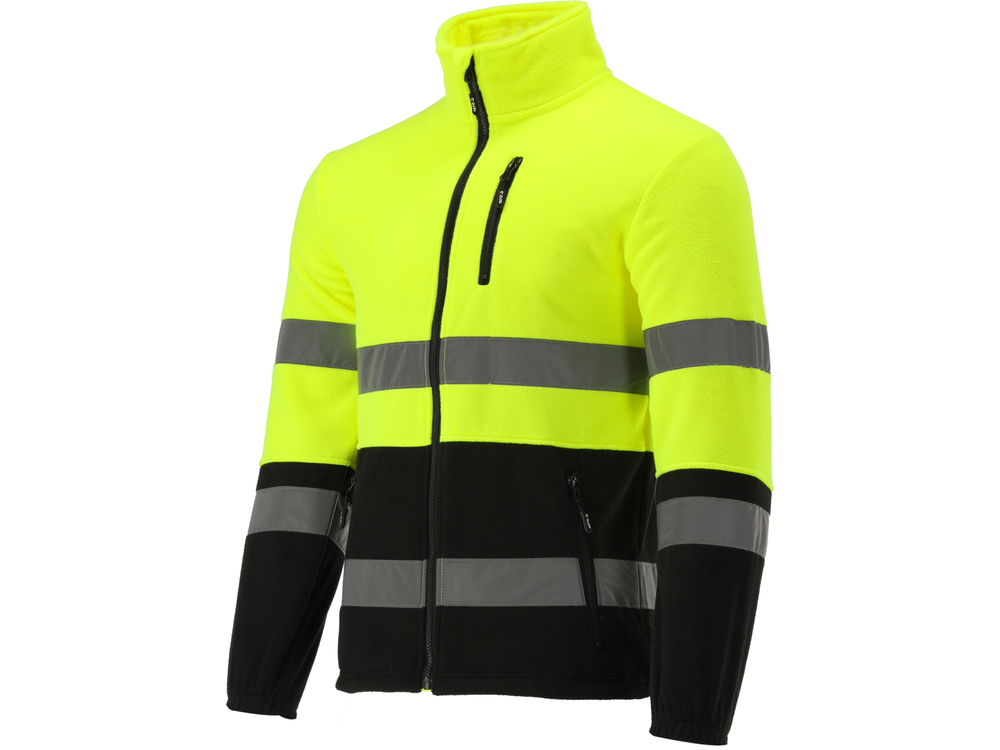 Seria Oriolus łączy prostą, techniczną stylistykę z solidnym wykonaniem i funkcjonalnymi rozwiązaniami użytkowymi. Szerokie, 50-milimetrowe pasy odblaskowe poprawiają rozpoznawalność sylwetki w świetle dziennym i po zmroku, zwiększając bezpieczeństwo pracy w strefach ruchu pojazdów i maszyn. Kontrastowy, czarny materiał poniżej klatki piersiowej ogranicza widoczność zabrudzeń i podnosi trwałość polaru w obszarach szczególnie narażonych na intensywne użytkowanie.
