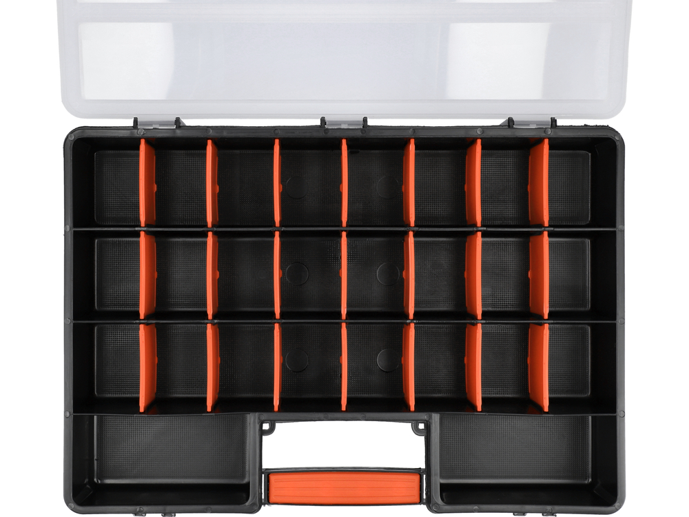 Organizador de 46x32 cm com pega em plástico. As paredes dos compartimentos extraíveis permitem ajustar o tamanho dos compartimentos. Adequado para guardar pequenos objectos, como pequenos fechos, peças sobresselentes e pequenas ferramentas. Pega de transporte prática. Útil em casa, na garagem, na oficina, etc.Preciso de ajuda? Tem perguntas?Faça uma pergunta e nós responderemos prontamente, com as perguntas e respostas mais interessantes publicadas para que outros possam ver.