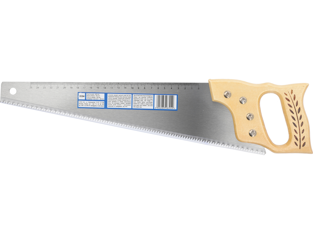 - Piła płatnica o klasycznym wyglądzie z wzorowanym na starych modelach drewnianym zamkniętym uchwycie.