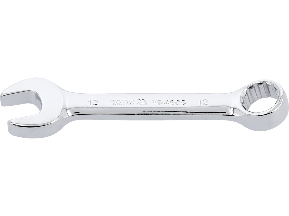 Chave combinada curta da marca Yato. Fabricada em aço cromo-vanádio 40CrV, caracteriza-se por uma longa vida útil. A extremidade de 12 ângulos da chave de anel, adicionalmente curvada, facilita a manobra da chave.