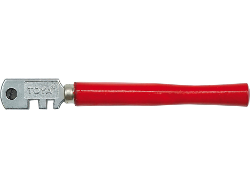 Cortador de vidro da marca Vorel equipado com uma cabeça móvel com seis rodas de corte. O produto tem um cabo de madeira e uma cabeça equipada com dois entalhes para agarrar o vidro ao partir.