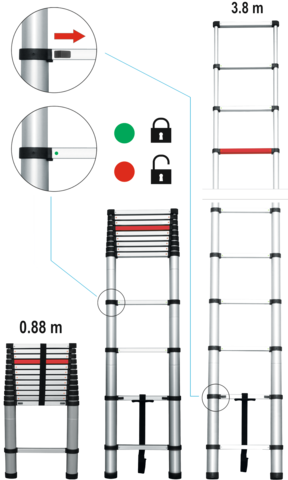 - Teleskopowa drabina aluminiowa 3,8 m z systemem automatycznego składania.
