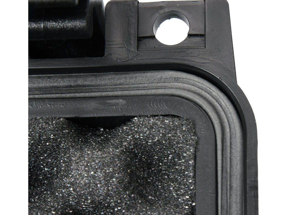 O interior da mala é preenchido com esponja pré-cortada, preparada para o utilizador modelar nichos para produtos específicos, por exemplo, ferramentas, equipamento fotográfico ou equipamento de medição.