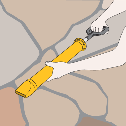Para o enchimento eficaz de grandes juntas, por exemplo, no acabamento de caminhos ou paredes de lajes de pedra e outras construções em pedra. As grandes juntas irregulares são preenchidas rápida e eficazmente com a extrusora.