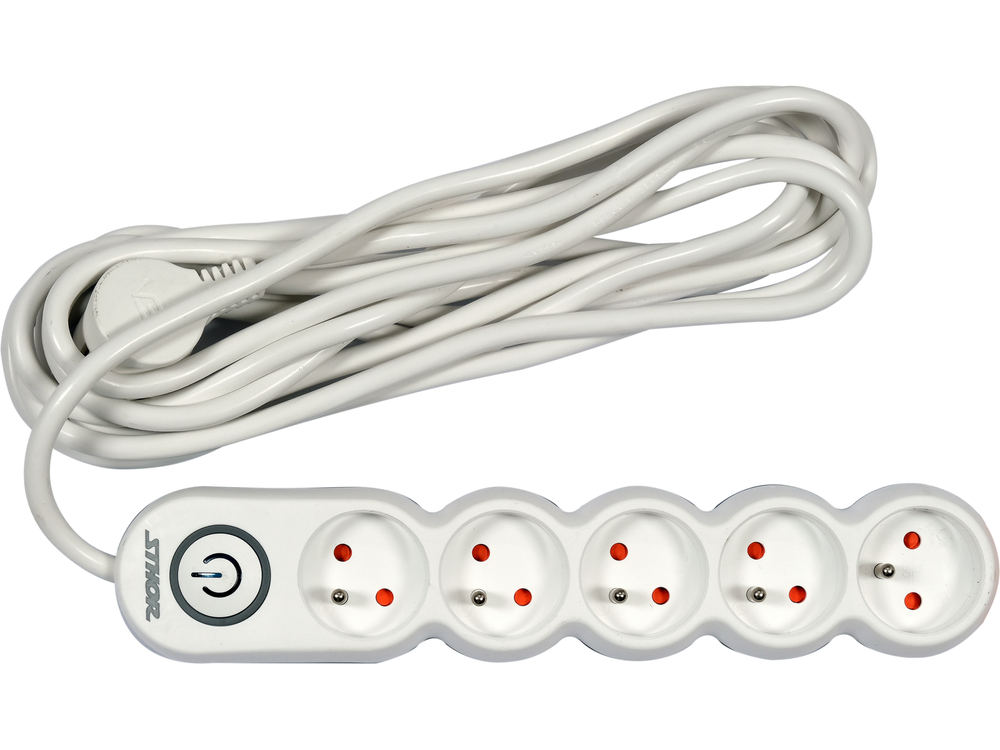 O cabo robusto de três núcleos com secções transversais aumentadas numa bainha de PVC torna a extensão adequada para utilização em casa e no escritório.
