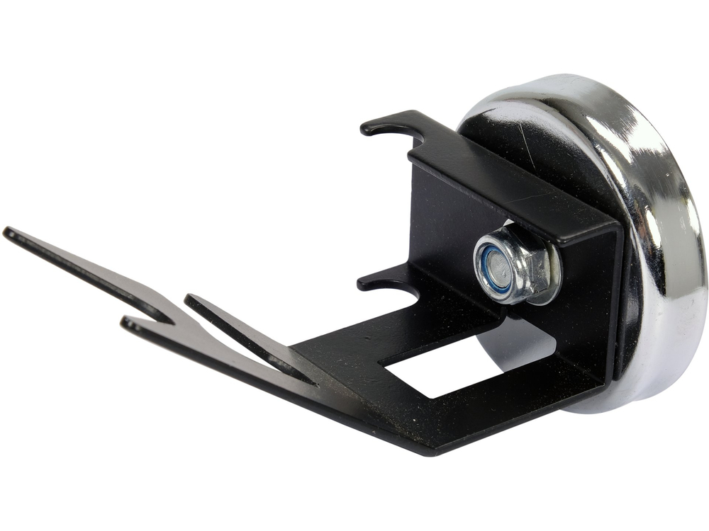 Fabricado em aço de 2,5 mm de espessura com um íman de ferrite robusto e forte na base.