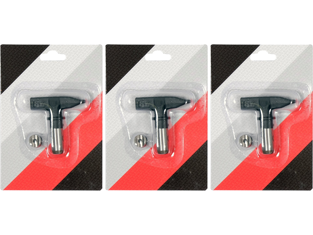 Conjunto de 3 bicos universais no tamanho mais popular 517 para pintura por pulverização com uma unidade de pintura. Concebidos para unidades hidrodinâmicas.