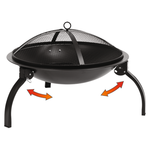 Fogão de campismo portátil para a preparação segura da fogueira, também como fonte de calor e luz e como elemento decorativo. A tampa com rede de aço impede a passagem de faíscas da fogueira para o exterior. A lareira tem pernas dobráveis, pelo que ocupa pouco espaço quando é guardada.