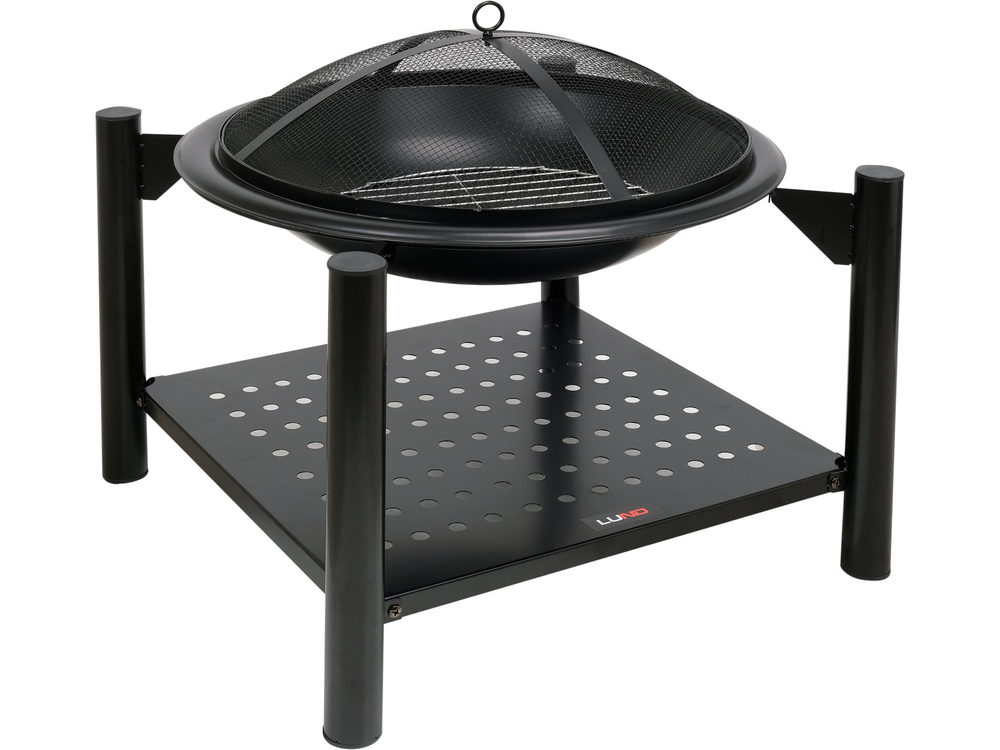 Uma grande lareira portátil concebida para a preparação segura de uma fogueira, como fonte de calor e luz, bem como um elemento decorativo para o jardim. A tampa de rede da lareira limita a saída de faíscas do fogo para o exterior.