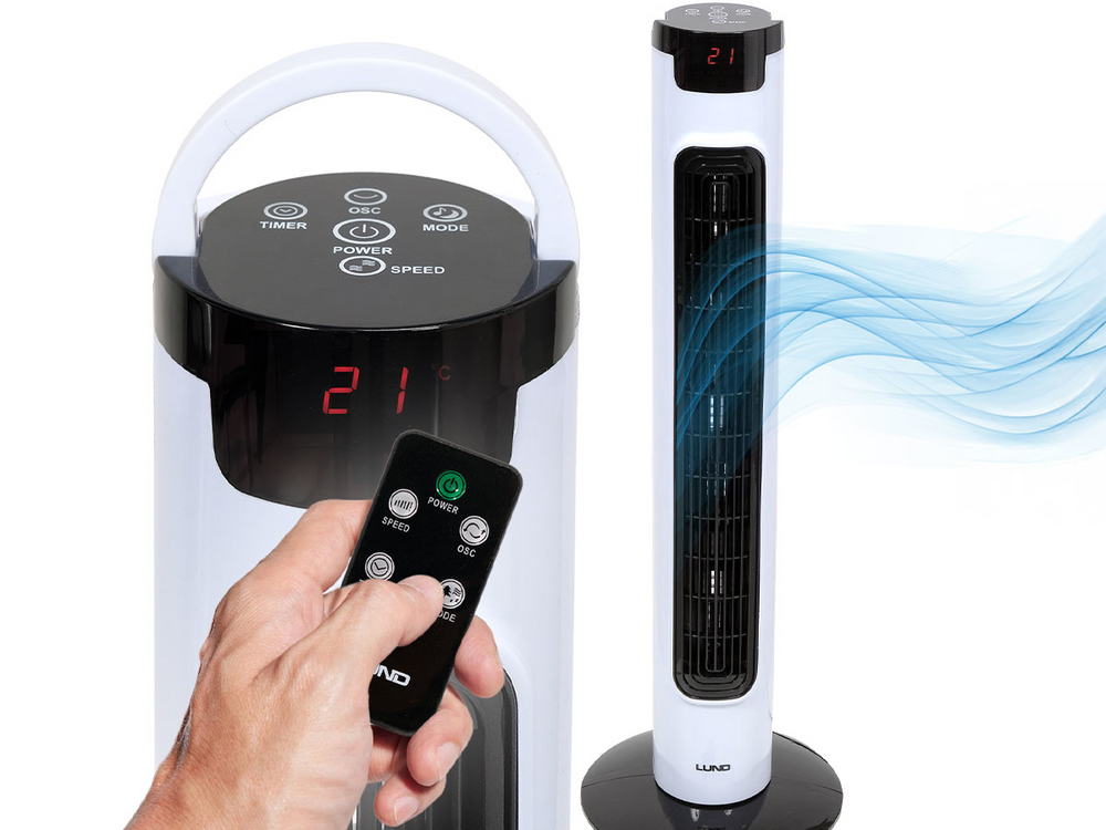 Um ventilador de coluna com um design fino e um estilo minimalista. O visor LED de fácil leitura facilita o controlo do aparelho e informa sobre a temperatura atual do ar na divisão. Três modos de funcionamento contribuem para o conforto de utilização: natural, normal, noturno. Um temporizador permite o desligamento automático após um período de tempo predefinido. O controlo remoto fornecido permite alterar à distância as definições de funcionamento da ventoinha.