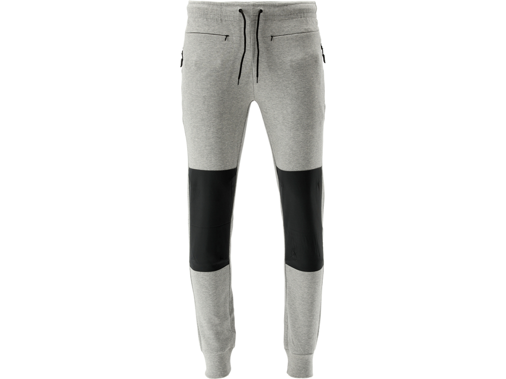 Calças de fato de treino para o trabalho com um elevado teor de elastano e um forro agradável ao corpo que lembra o linho acetinado. A presença de até 7% de elastano na composição do tecido confere às calças uma elasticidade semelhante à das leggings ou do vestuário desportivo em lycra. Quatro bolsos com fecho e espaçosos. Os bolsos da frente podem ser puxados para fora e, nesse caso, podem ser utilizados como bolsos de montagem graças aos laços cosidos de fita elástica.