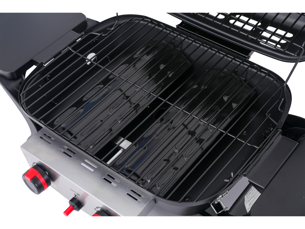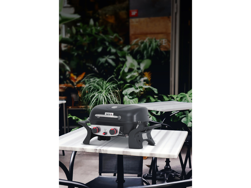 Grelhador a gás portátil YATO Yake com dois queimadores com uma potência total de 5 kW. Equipado com uma grelha esmaltada de 47 x 37 cm e uma grelha de aquecimento esmaltada de 40 x 13 cm. Ótimo para utilizar no jardim e em viagem. Pode ser adquirido o carrinho dobrável YG-20006.