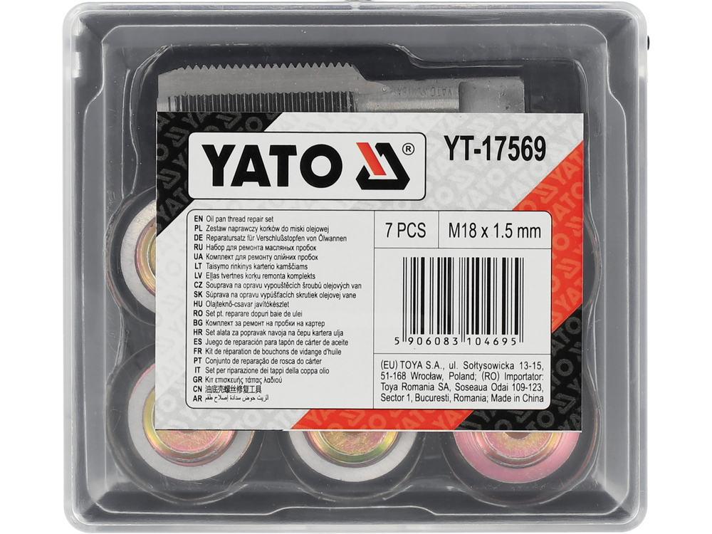 Kit para a reparação simples de roscas de tampões de drenagem de cárteres de óleo, caixas de velocidades, etc. Adapta-se à maioria das roscas normalmente utilizadas em automóveis e camiões ligeiros.