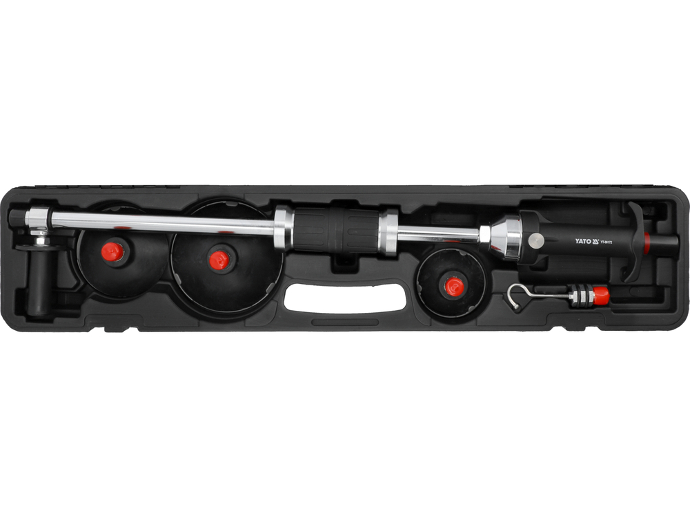 Extrator com ventosa para a eliminação de mossas na carroçaria sem danificar a pintura. Permite uma fixação firme do painel ao eliminar mossas e reentrâncias com um martelo de inércia. Ideal para a primeira remodelação do painel. Equipado com um indicador de vácuo integrado.