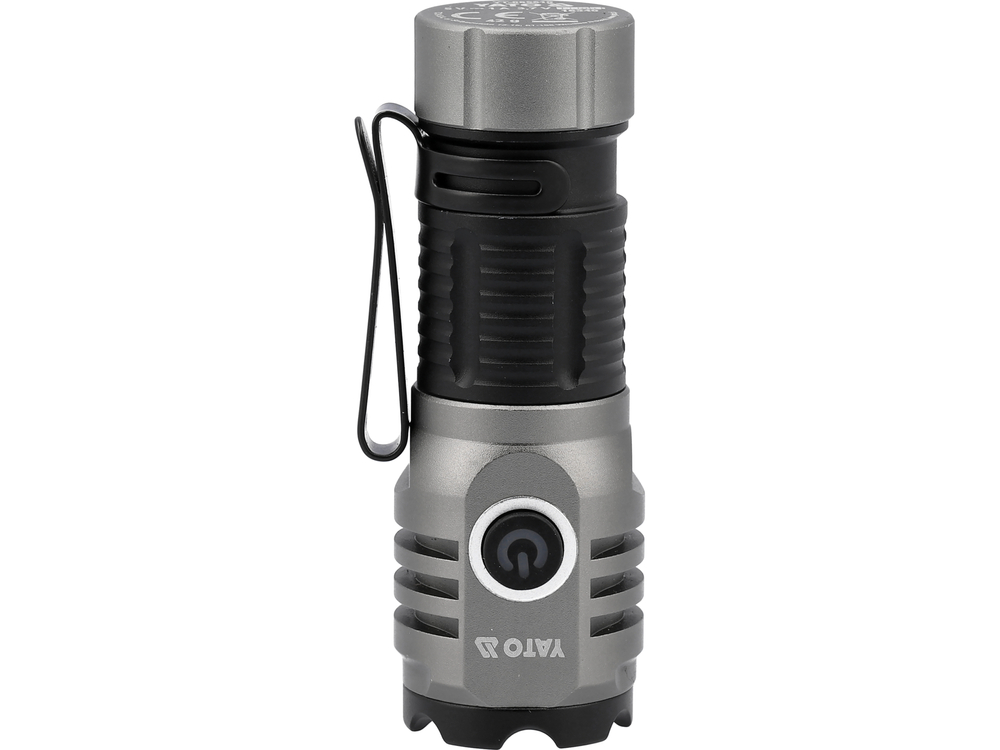 - Botão ligar/desligar - liga a lanterna, muda de modo, indica o nível da bateria. Mantendo o botão premido, ativa os modos pulsar e SOS e, premindo-o duas vezes, ativa a luz extremamente forte no modo turbo (1000 lm), que, após 30 segundos, muda automaticamente para o modo alto (600 lm), poupando energia