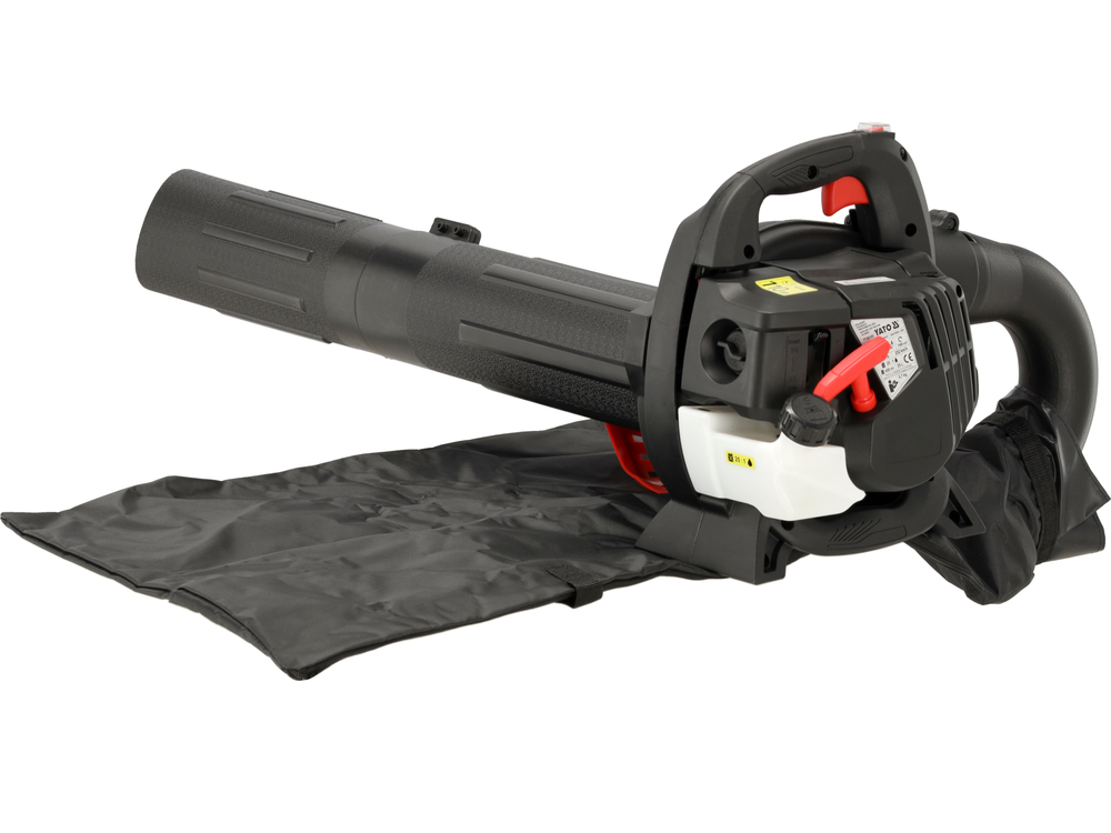 Aspirador a gasolina multifuncional com função de soprador e triturador, projetado para limpeza eficiente e manutenção contínua da ordem em áreas verdes, entradas, estacionamentos e jardins. Graças ao motor de dois tempos com capacidade de 25,4 cm³ e potência de 0,75 kW, o dispositivo gera um forte fluxo de ar com velocidade de até 252 km/h, permitindo a remoção rápida de folhas, grama, galhos pequenos e outras impurezas. O saco de resíduos grande, com capacidade de 35 litros, permite um trabalho mais longo sem a necessidade de esvaziamento frequente.