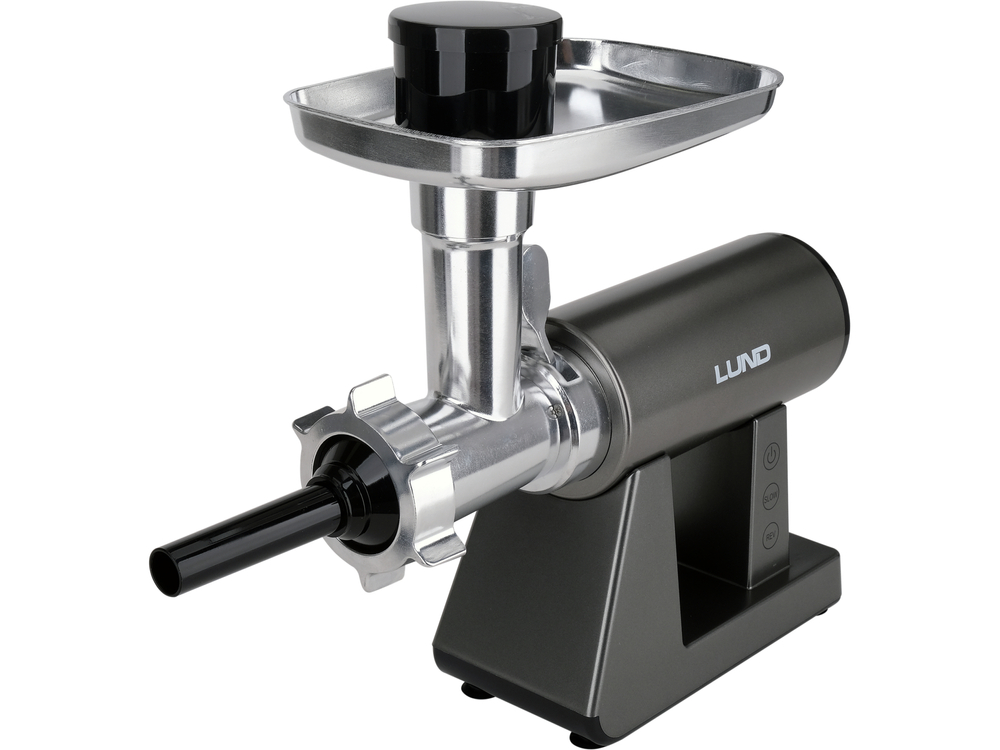A carcaça durável de plástico ABS e a bandeja de metal garantem estabilidade e longa vida útil ao dispositivo, e a lâmina de aço inoxidável garante moagem precisa e uniforme. O conjunto inclui três peneiras com diâmetros de 4 mm, 7 mm e um empurrador, permitindo ajustar o grau de moagem de acordo com o tipo de prato. Além disso, três bocais para encher linguiças e três para kebbe permitem criar pratos variados no estilo caseiro.