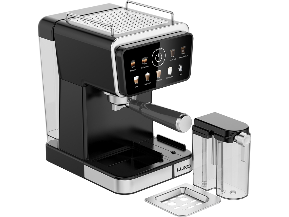 O colorido painel sensível ao toque torna a escolha da bebida e a operação do dispositivo rápidas e intuitivas, e o sistema Thermoblock e a bomba de 20 bar garantem uma extração estável e pronta para funcionar em apenas 45 segundos. O vaporizador de leite removível com controle de densidade da espuma, a bandeja aquecida para xícaras e o controle preciso da temperatura garantem que cada bebida tenha o sabor de uma cafeteria profissional. O programa de limpeza automática e os tanques de água e leite espaçosos e fáceis de limpar simplificam a operação diária.