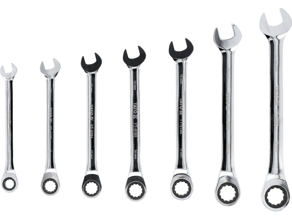 Ráčnové kombinované kľúče 10-19 mm, 7-dielna sada
