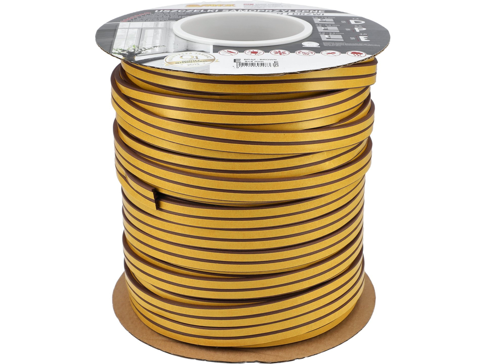 • Uszczelka samoprzylepna do okien i drzwi typu E, kolor brązowy. Wymiary 9,0x4,0mm.