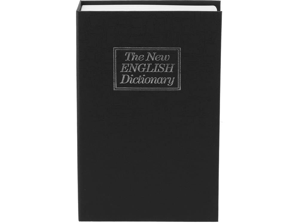 - Podręczna kaseta do bezpiecznego przechowywania pieniędzy, wykonana w kształcie książki.