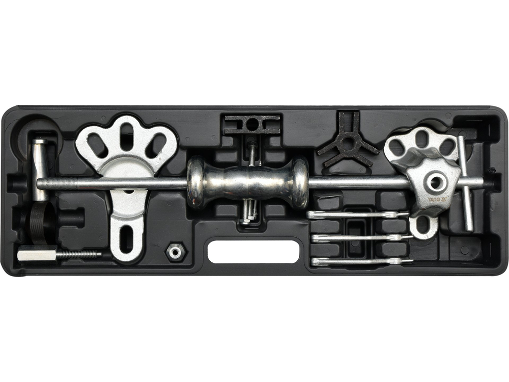 kľúčový adaptér, držadlo, kladivo, sťahovák náprav x2, adaptér na klúč, golier, 3-háková hlava, 2-háková hlava, matica a skrutka x3 (M8 x 1,25 mm), zásuvka na skrutku, sťahovacie rameno,